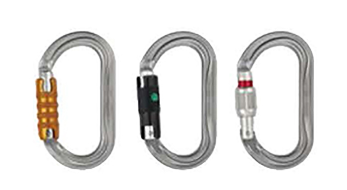 安全鉤,也叫作主鎖、登山扣、安全扣、裝備扣等等。安全鉤標準遵循NFPA 1983緊急救援服務時使用的安全繩和裝備標準,而且產品上應標明基于設計荷載、性能要求而規定的是技術型產品(輕型產品)還是通用型產品。標準允許制造商標明該產品的額定最小斷裂強度MBS或更高的數值,但是不要超過根據最新實驗結果得到的3σMBS的計算值。有一些制造商在產品上標明了NFPA要求的產品最小性能使用要求,并且在標簽或產品說明書上提供了實驗結果。其他制造商則只在裝備上標明了根據最新實驗結果得到的3σ MBS值。